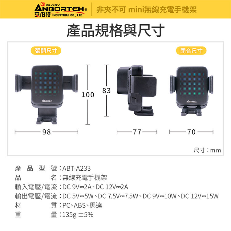 支援手機寬度:86 mm ±5%
