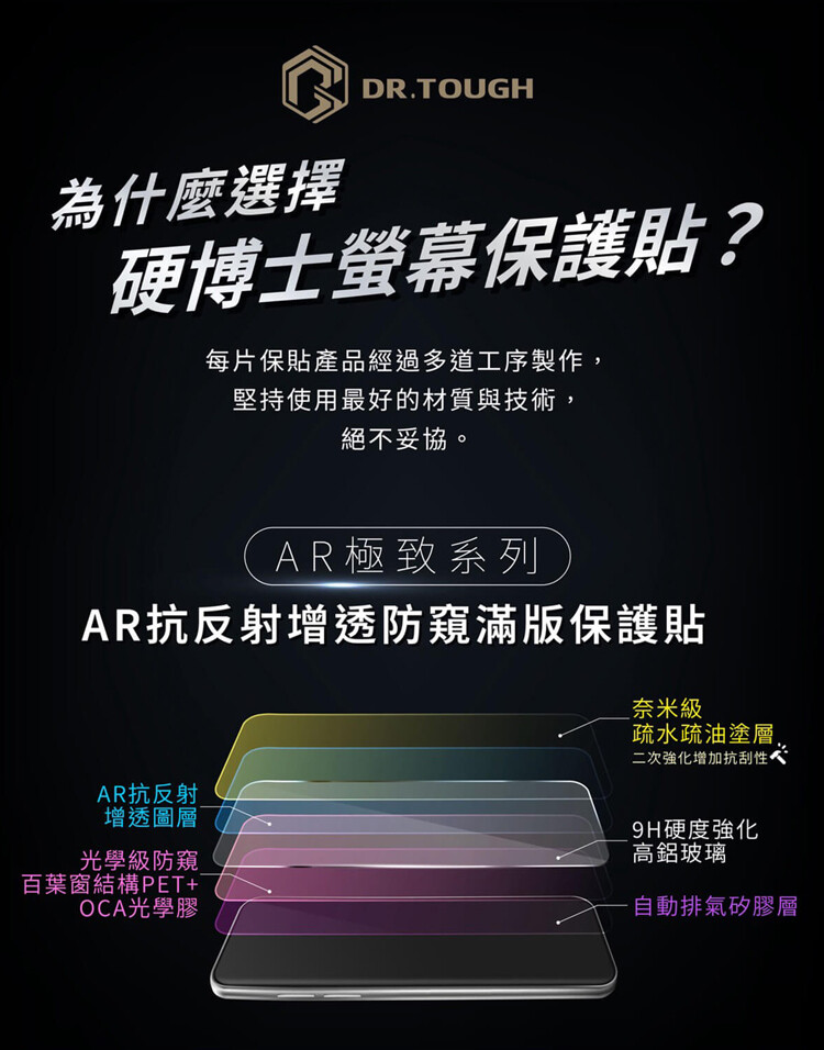 DR.TOUGH硬博士-極致系列 iPhone 17 Pro 6.3 滿版玻璃保護貼(AR防窺)