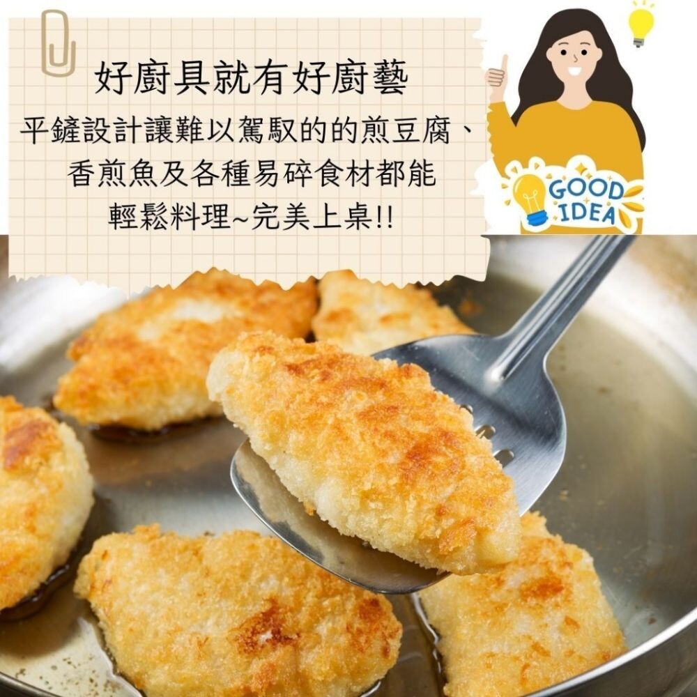 ★平鏟設計方便於豆腐/蛋/魚類食材的翻面 (好上手)