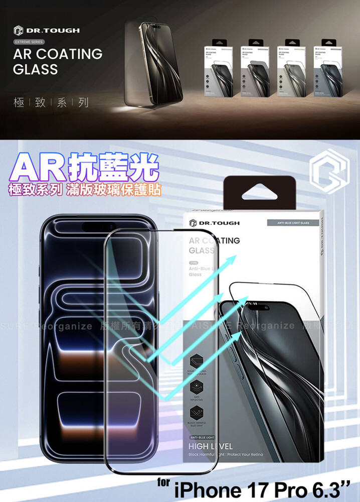 DR.TOUGH硬博士-極致系列 iPhone 17 Pro 6.3 滿版玻璃保護貼(AR藍光)