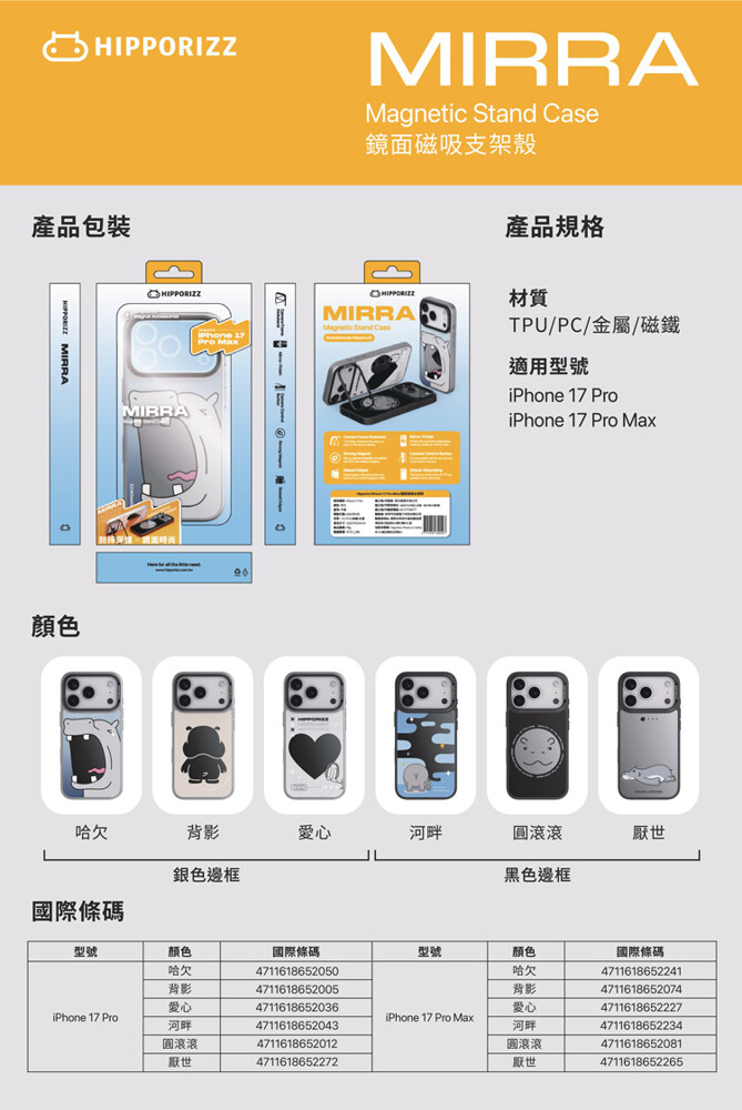Hipporizz Mirra 河馬 iPhone 17 Pro 6.3 鏡面磁吸支架殼