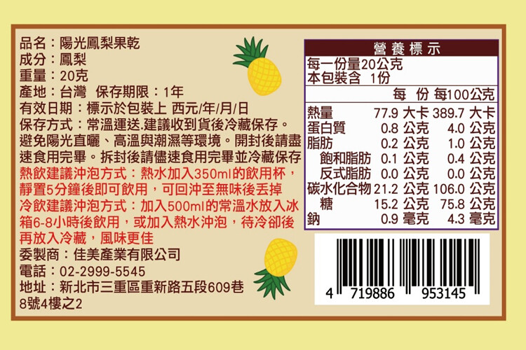 品名 : 陽光鳳梨果乾