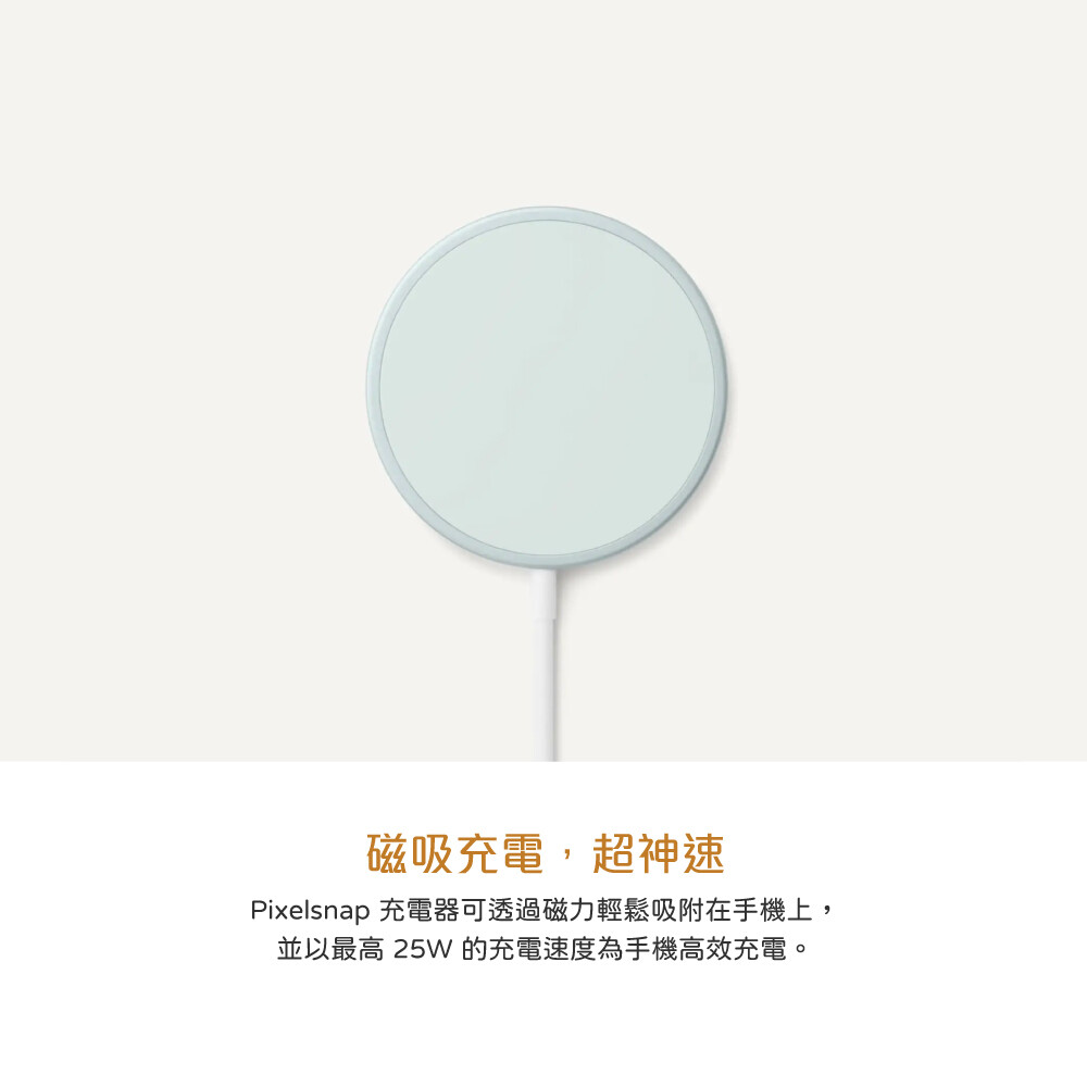 內容物:Pixelsnap 充電器、1 公尺整合式 USB-C® 傳輸線、安全性和保固指南