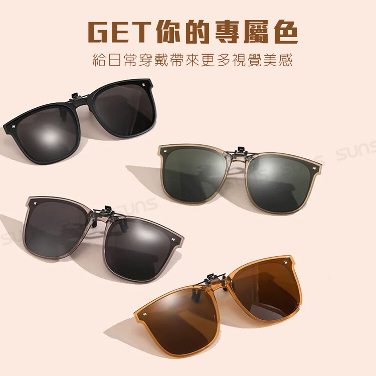 這款 偏光折疊夾片 專為近視眼鏡設計,不用再多配一副墨鏡,輕鬆一夾即可瞬間變身太陽眼鏡。
