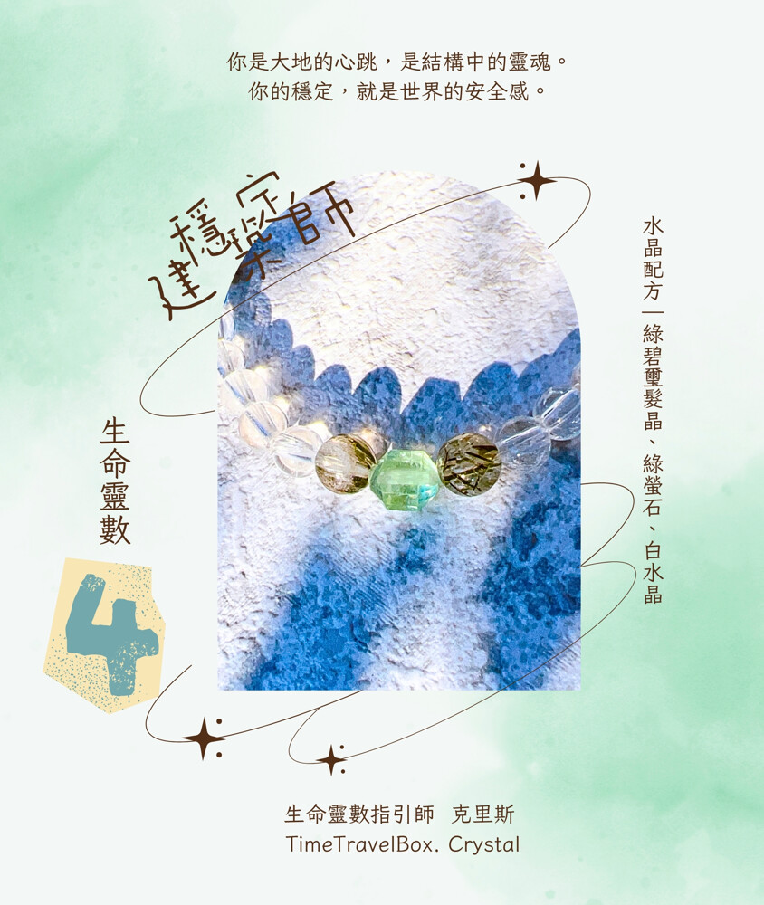 4號象徵實在、穩定與責任。這條手鍊協助你建立自己的節奏與秩序,不再焦慮混亂,而是擁有紮實的力量去打造你想要的生活。