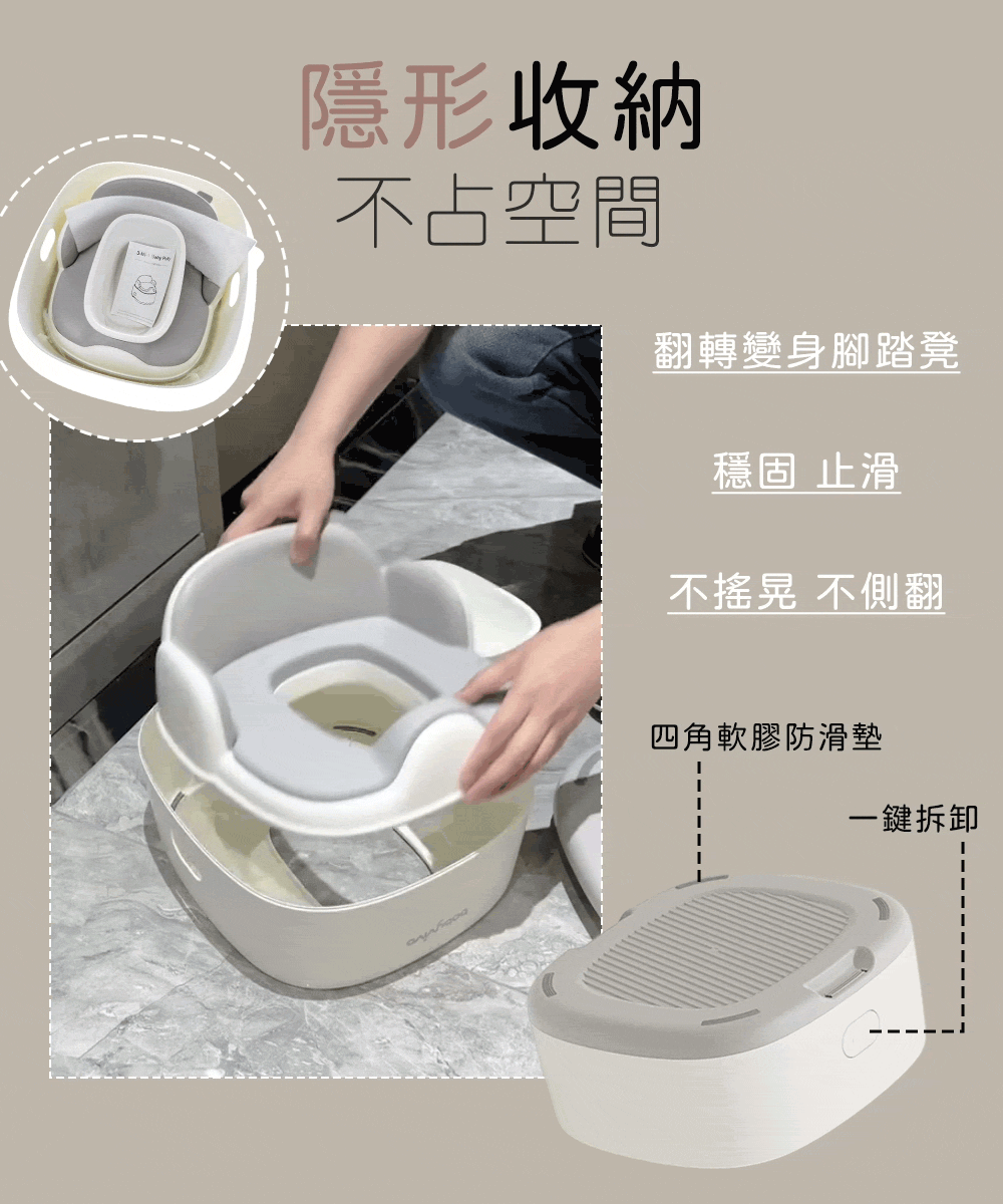 🪜 腳踏凳功能:翻轉即可變身小凳子,刷牙洗手沒問題