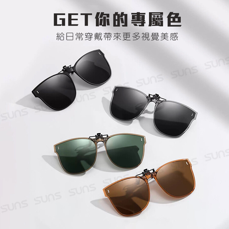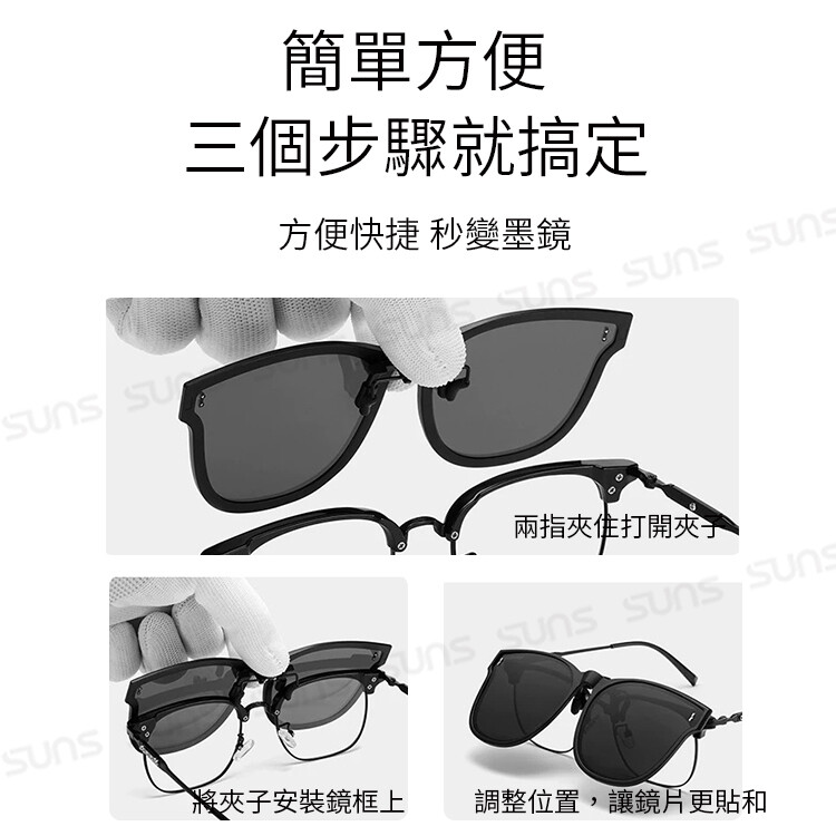 這款 偏光折疊夾片 專為近視眼鏡設計,不用再多配一副墨鏡,輕鬆一夾即可瞬間變身太陽眼鏡。