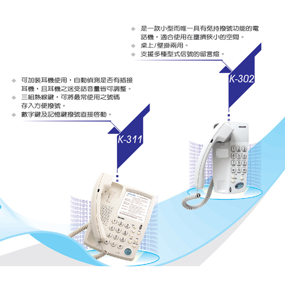 昌運監視器 國洋K-302 小型免持聽筒撥號電話機 桌上 壁掛兩用