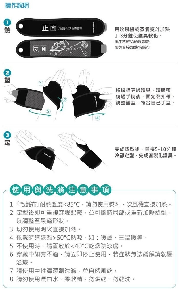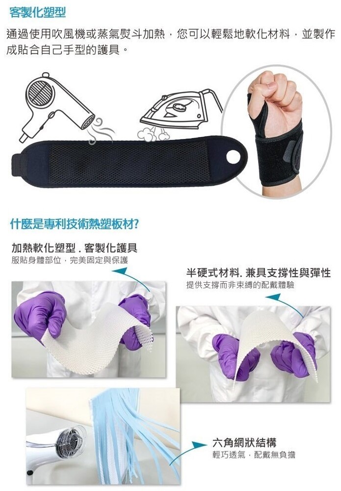 ◆ 內含熱可塑性支撐材料 可客製化塑型支撐手腕