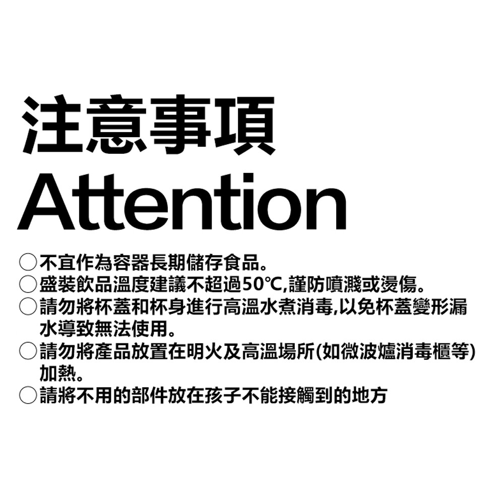 3.請勿將杯蓋和杯身進行高溫水煮消毒,以免杯蓋變形漏水導致無法使用。