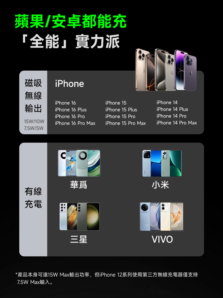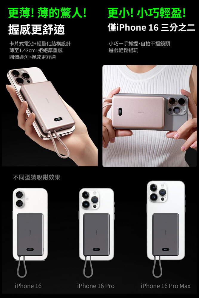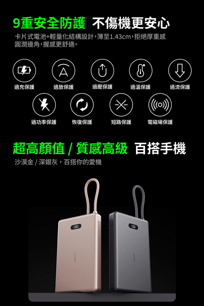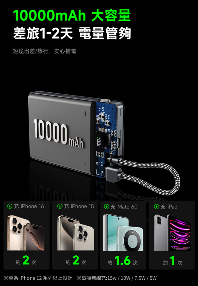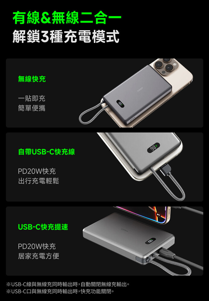 idmix 自帶USB-C線 磁吸無線充行動電源Q10L