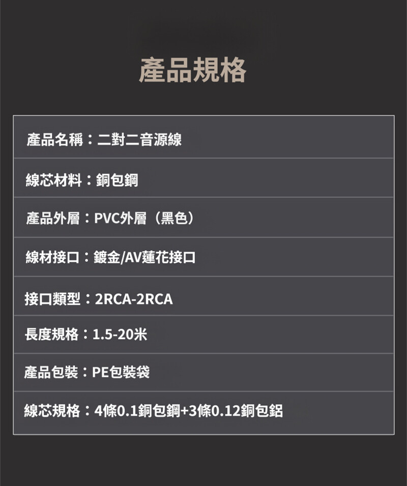 ◆RCA二對二,公頭對公頭標準蓮花頭規格
