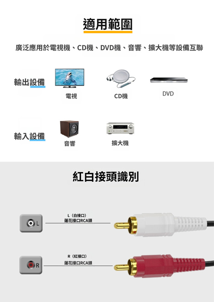 RCA二對二音源線紅白蓮花頭連接線AV影音電腦音響箱音源線(RC-22)-5米