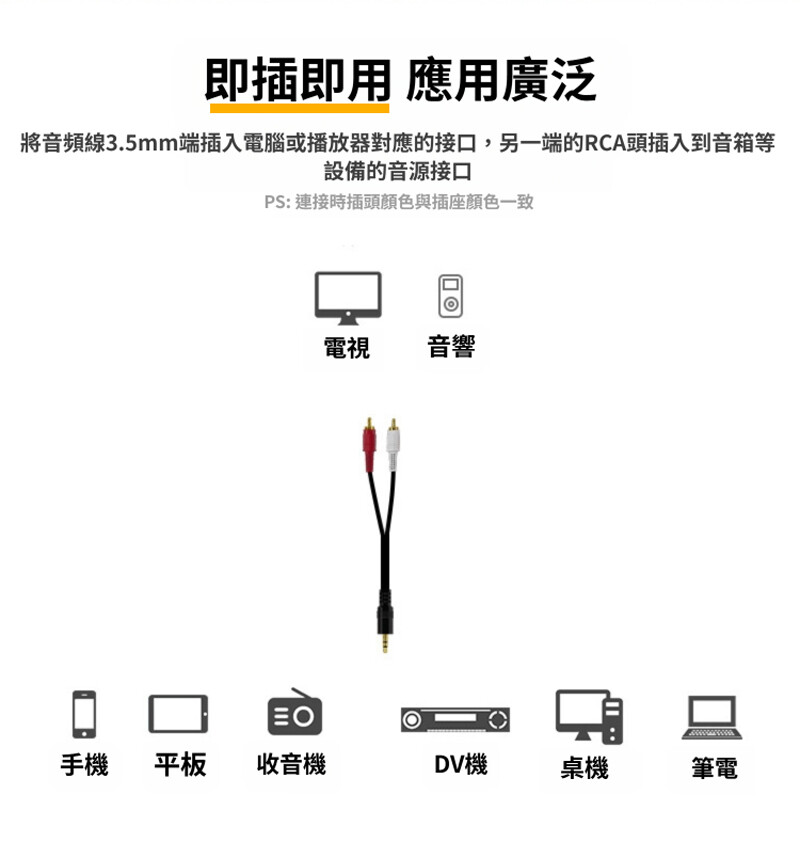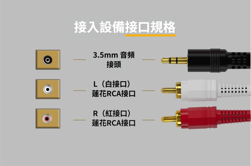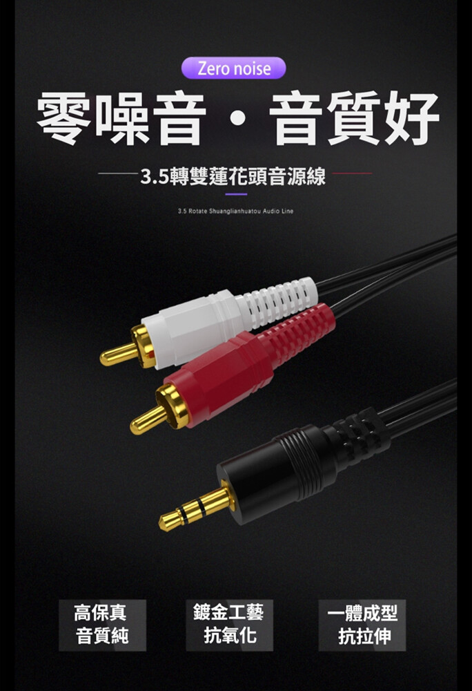 ◆適用音源孔轉接,標準公頭3.5mm轉紅白色RCA蓮花接頭
