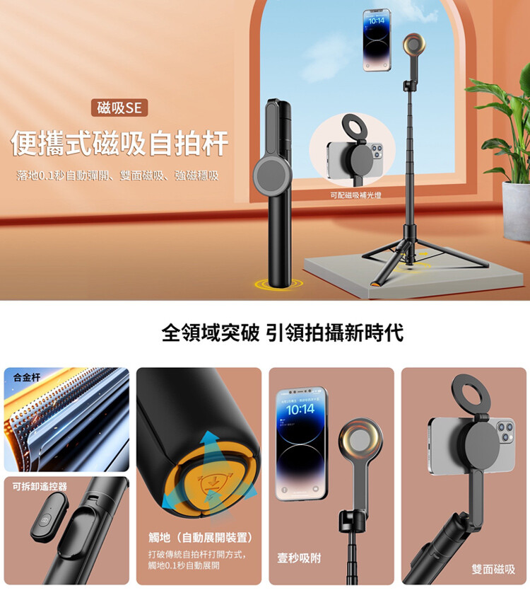 VOORCAWS-22001-11 1.67m 落地彈開自拍棒 Magsafe磁吸/1.67米7段/雙面磁吸