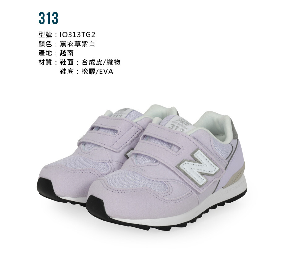 NEWBALANCE 女小童休閒運動鞋-魔鬼氈 313系列 NB 薰衣草紫白