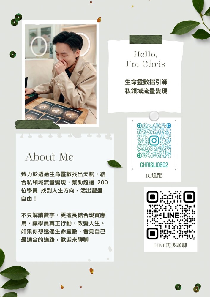 克里斯老師專屬15分鐘線上生命靈數諮詢(價值 $400)