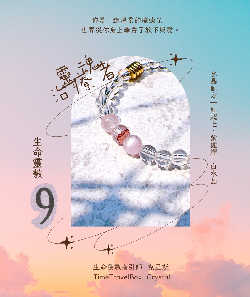 9號代表圓滿與療癒。這條手鍊象徵放下、原諒與大愛,協助你釋放內在的傷痛,轉化為智慧與慈悲,陪你用善良照亮世界。