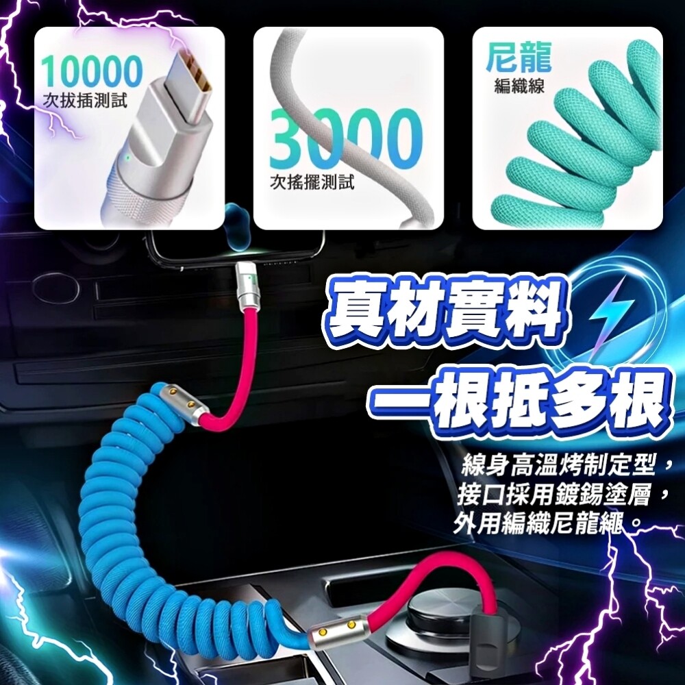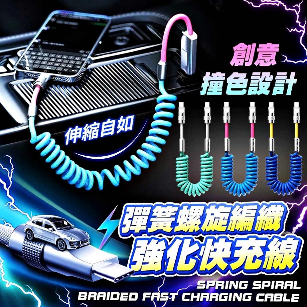 Meet Mind 撞色系列-彈簧螺旋編織強化快充線