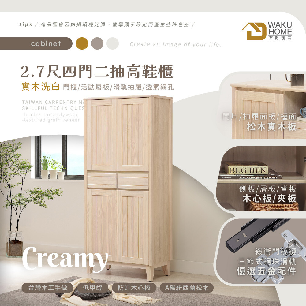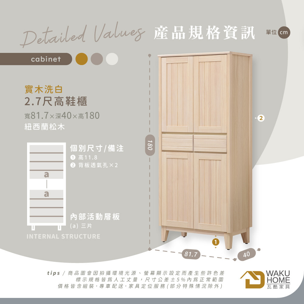 Creamy實木洗白2.7尺高鞋櫃A010-829