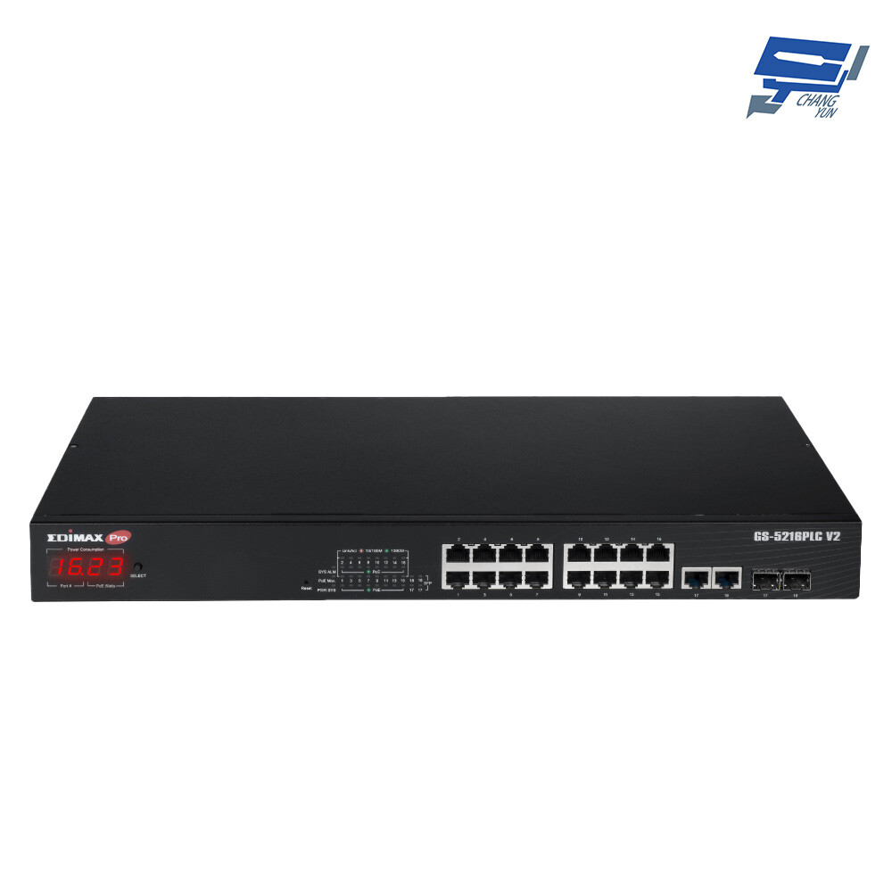 -16個Gigabit PoE+網路埠、2個Gigabit RJ45/SFP組合傳輸埠。