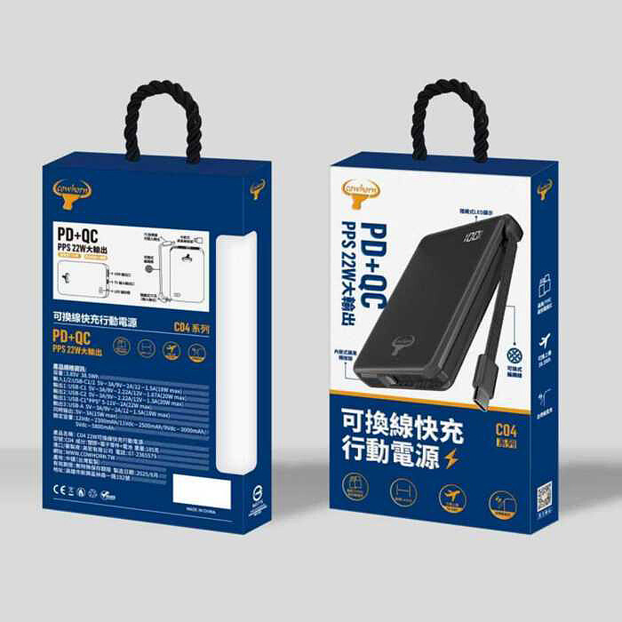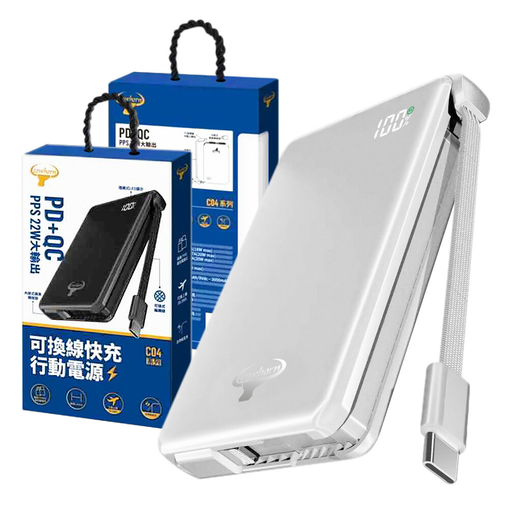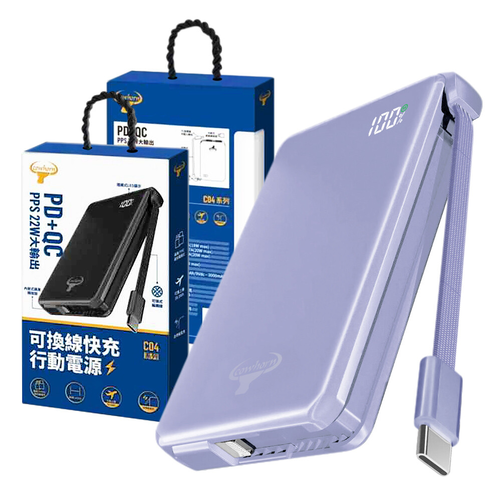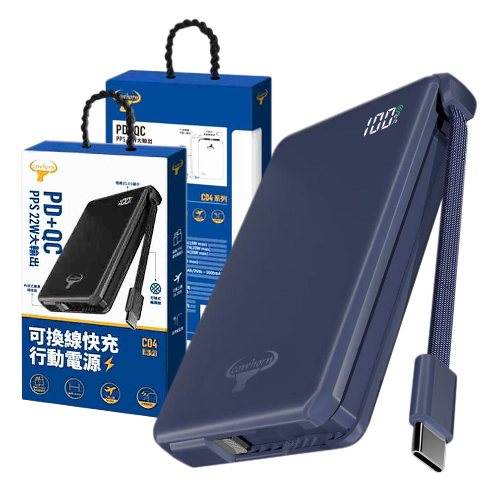 Cowhorn 牛角 C04 10000mAh自帶線可拆線數顯22W快充行動電源