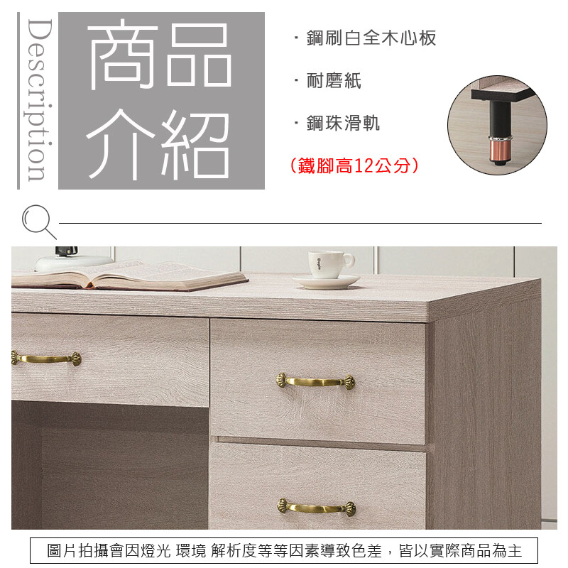 《奈斯家具Nice》455-2-HT 鋼刷白4尺書桌下座(601)