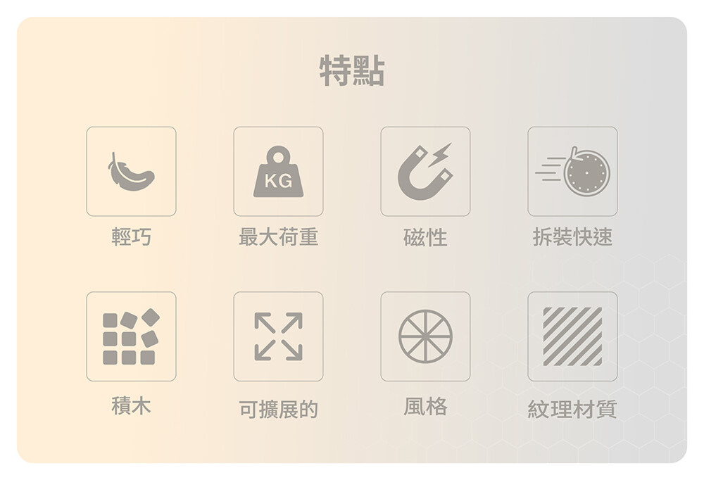 獨一無二的磁吸結構設計,隨心所欲的排列組合讓家具組合更多變化。