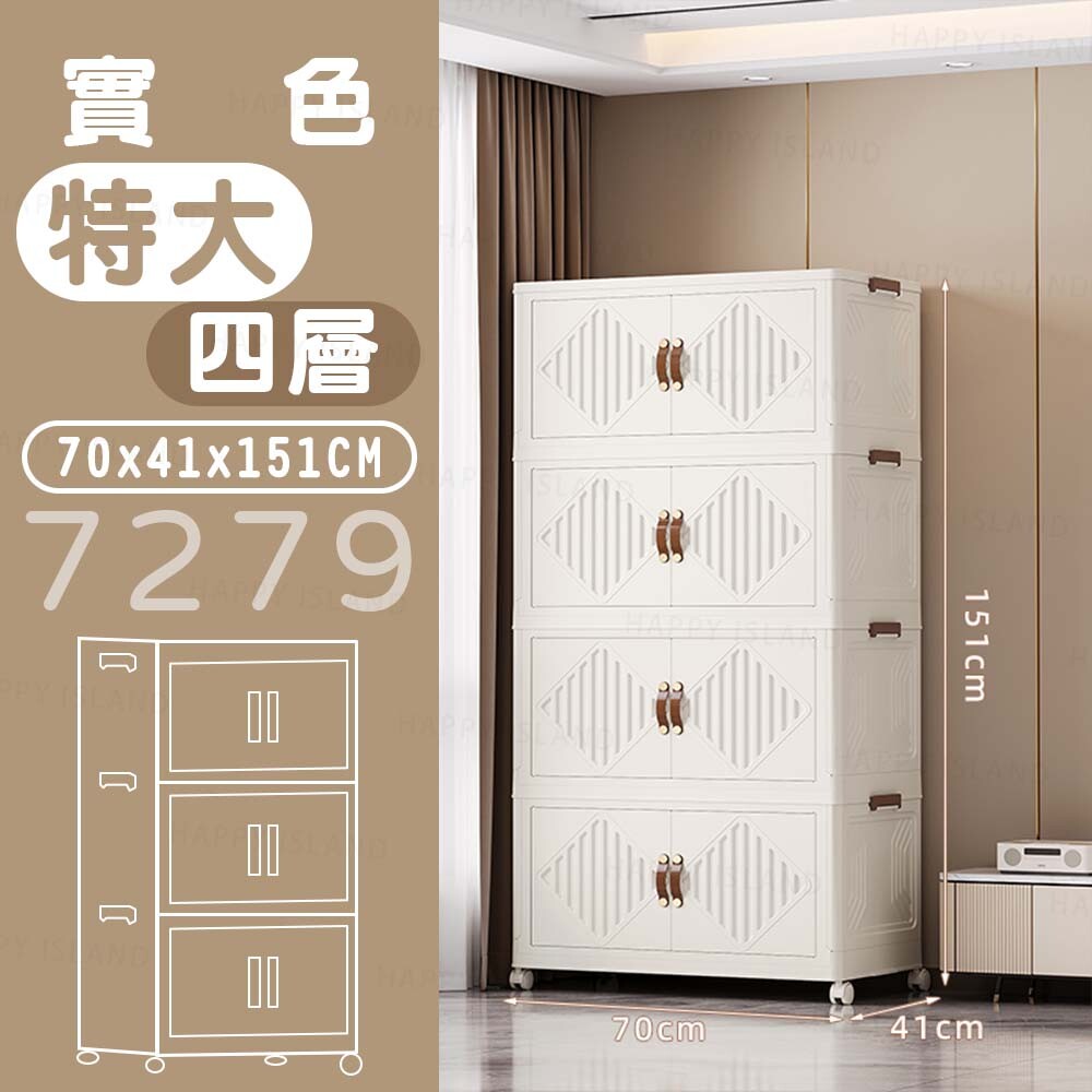多層摺疊收納櫃〔特大號四層〕大容量/免安裝收納櫃 開門式儲物櫃 多層 附滑輪