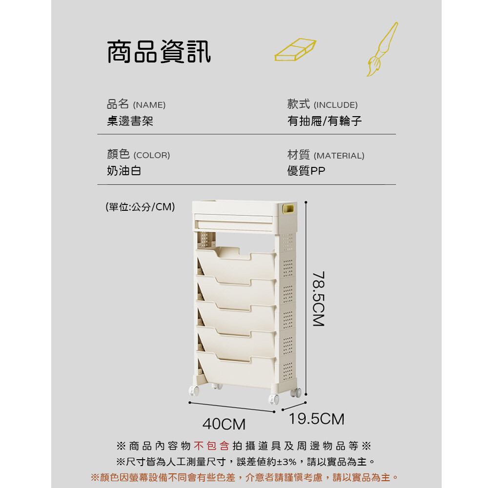 品牌AOTTO型號AS-602顏色白色產地中國特點附輪、耐重材質塑膠類型收納架款式開放式、附輪式適用場所廚房、浴室、臥室、辦公室層數5層以上組裝方式自行組裝尺寸長度: 40cm 寬度: 19cm 高度: 78.5cm