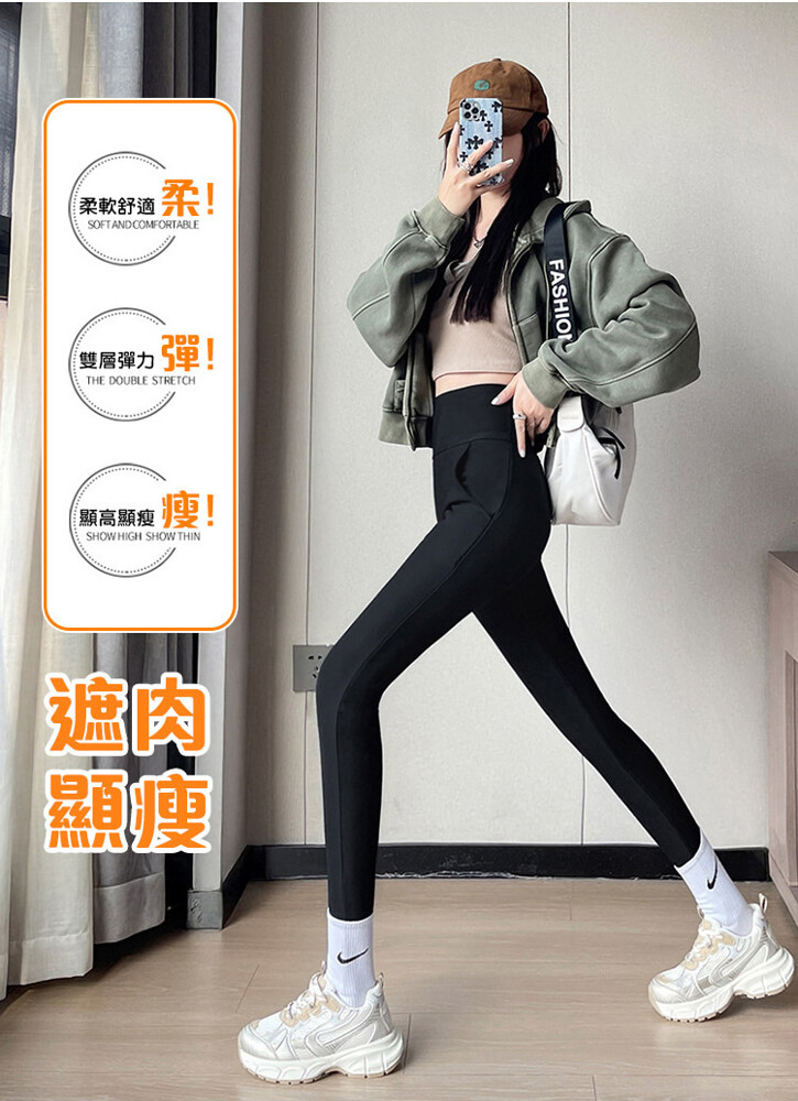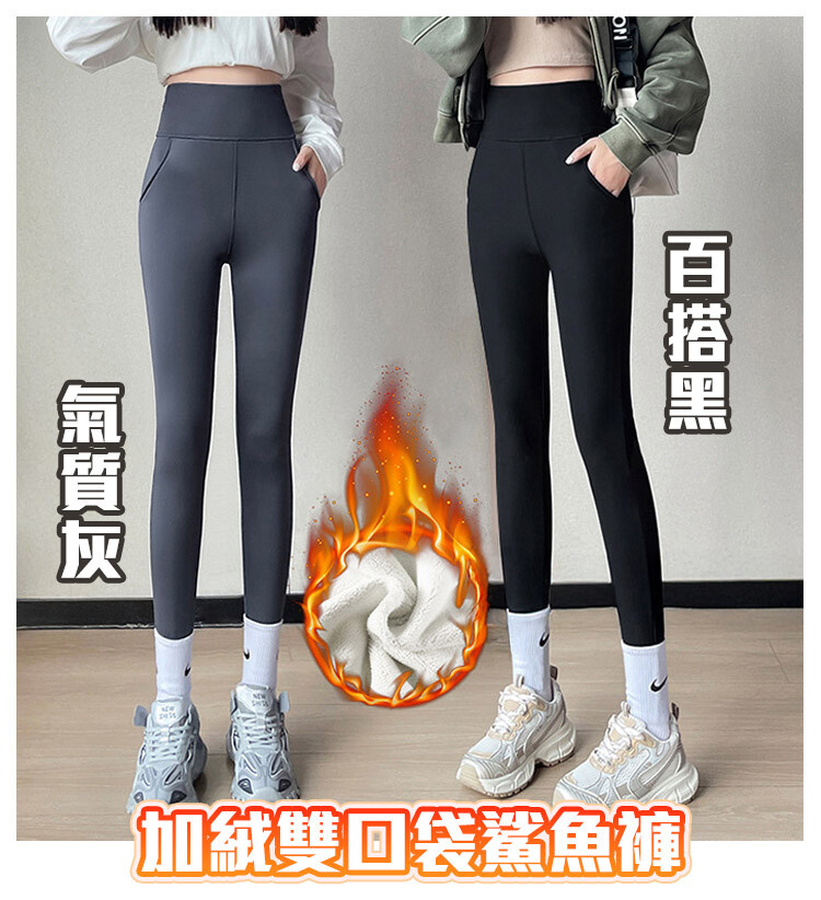 品名:升級加絨雙口袋顯瘦彈力保暖鯊魚褲-2PC