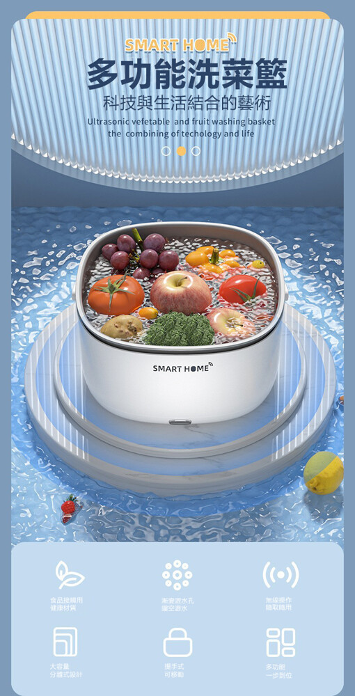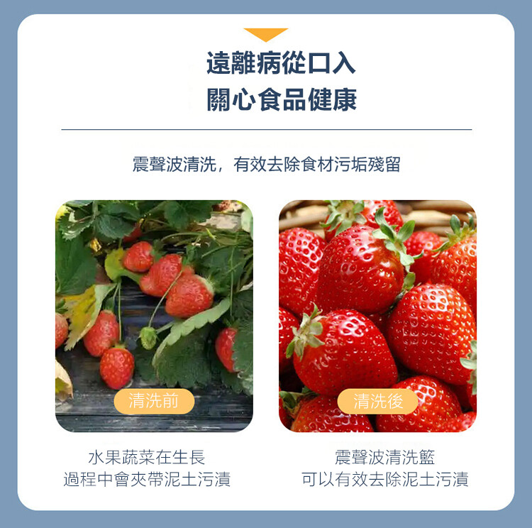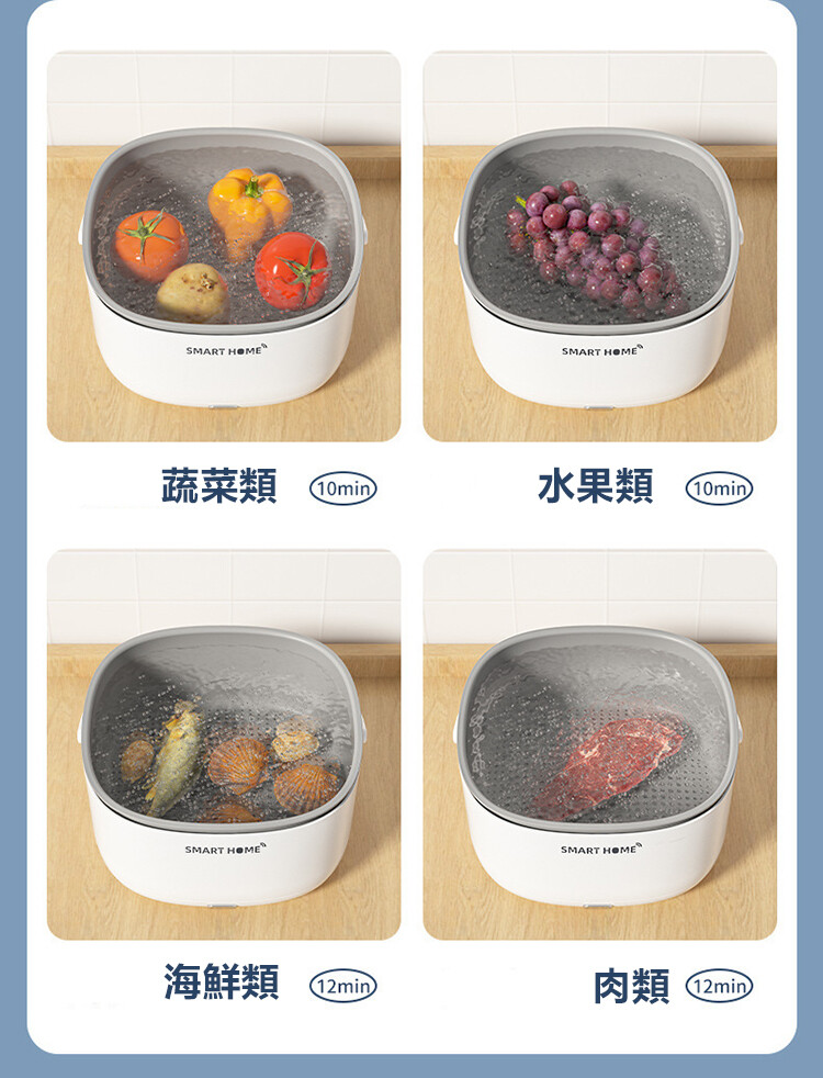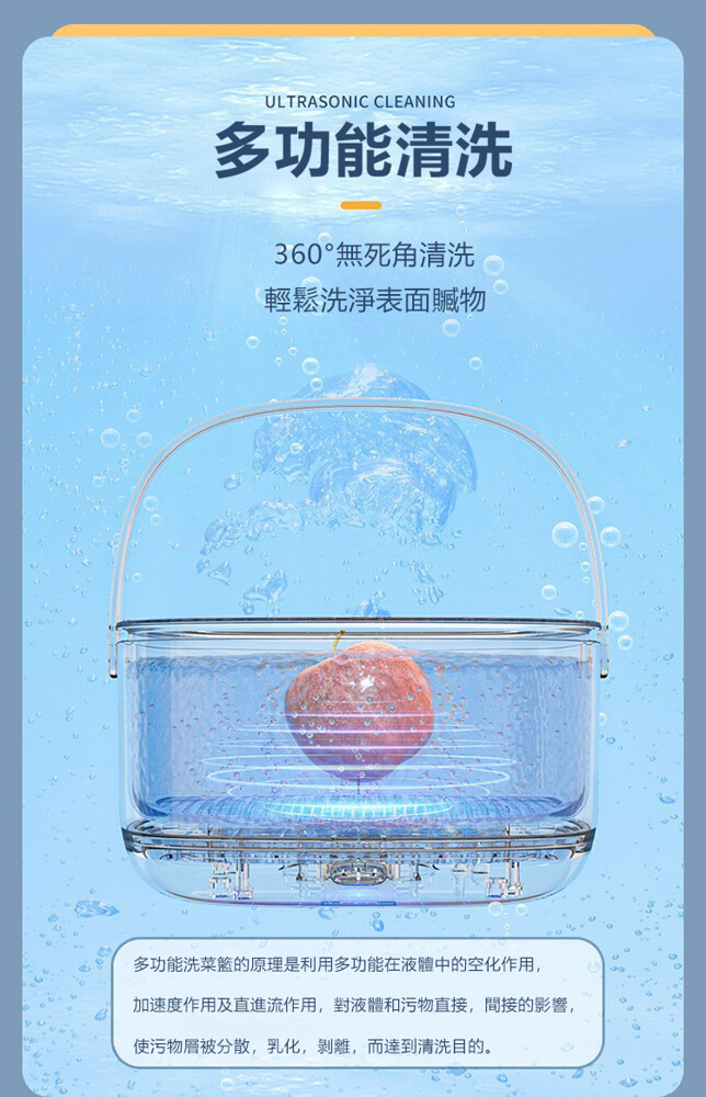 一鍵開啟按鈕,超聲波粒子交互流動,有效去除食材污殘留