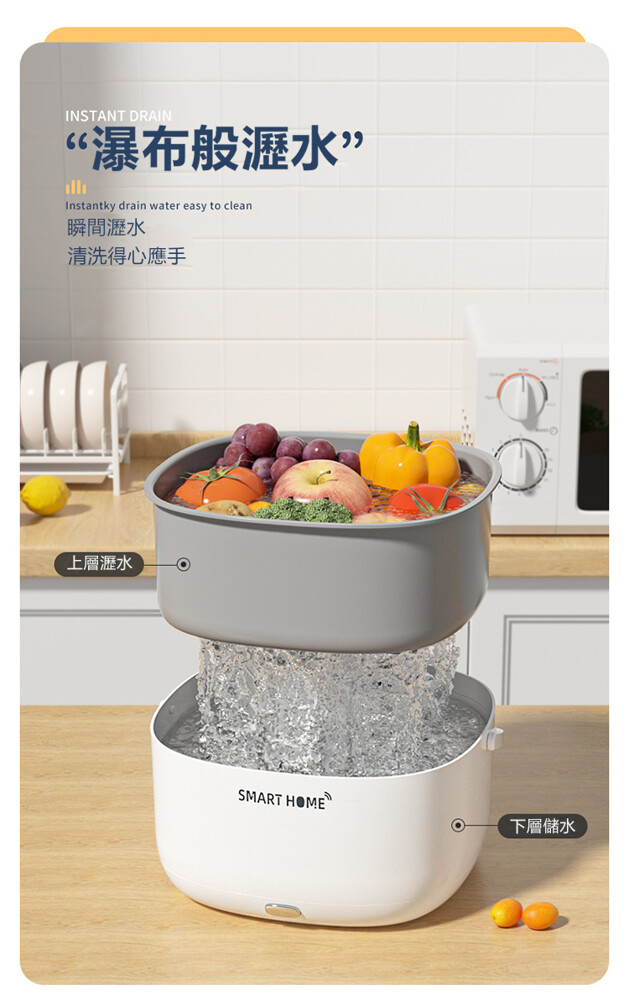 360度無死角清洗,輕鬆洗淨食材表面髒物