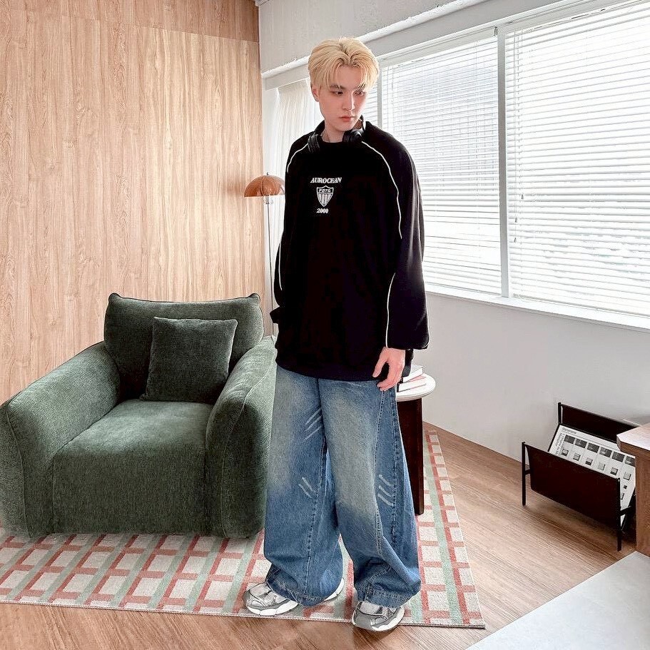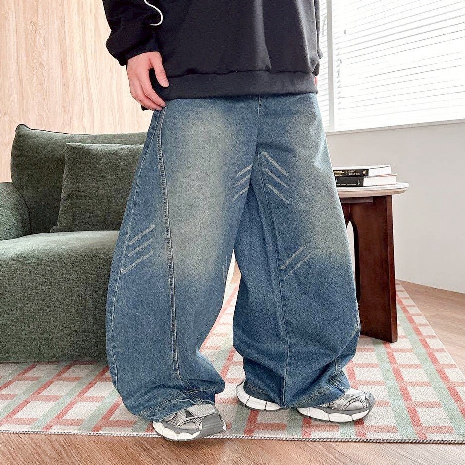 貓抓闊型彎刀牛仔褲休閒舒適好穿