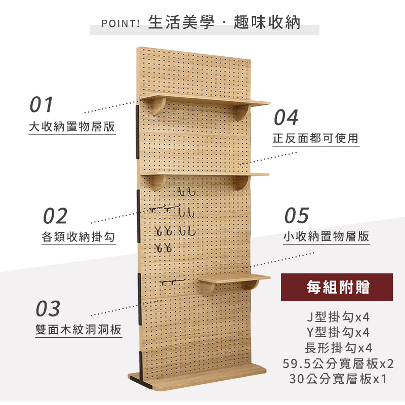 ◇ 層板每層平均載重3公斤,掛勾平均載重2公斤,整體兩邊共平均載重20公斤,重量必須二邊平均承重,不可只放單邊。