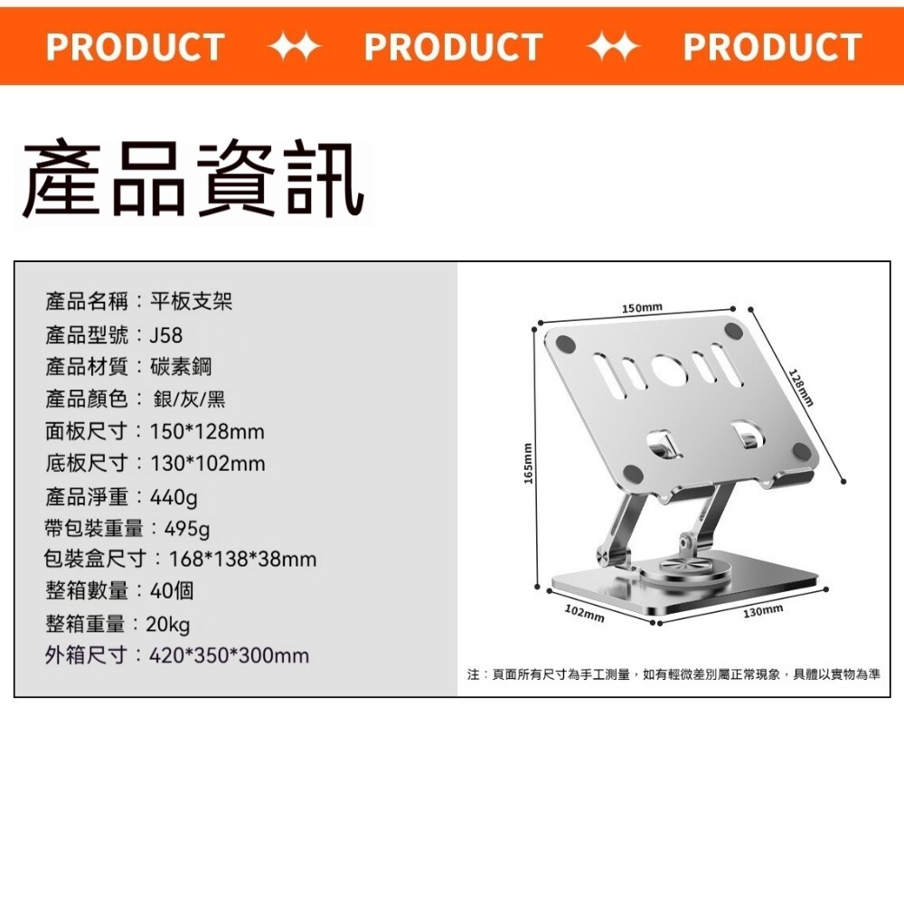 😊適用4~12.9吋手機/平板 😊圓孔散熱不易發燙 😊預留充電口 - 可邊使用邊充電 😊多重矽膠 防滑又防止裝置刮花 產品材質:碳塑鋼 面板尺寸:150*128mm 底板尺寸:130*102mm 尺寸:13*10.2*16.5cm 重量:約440g