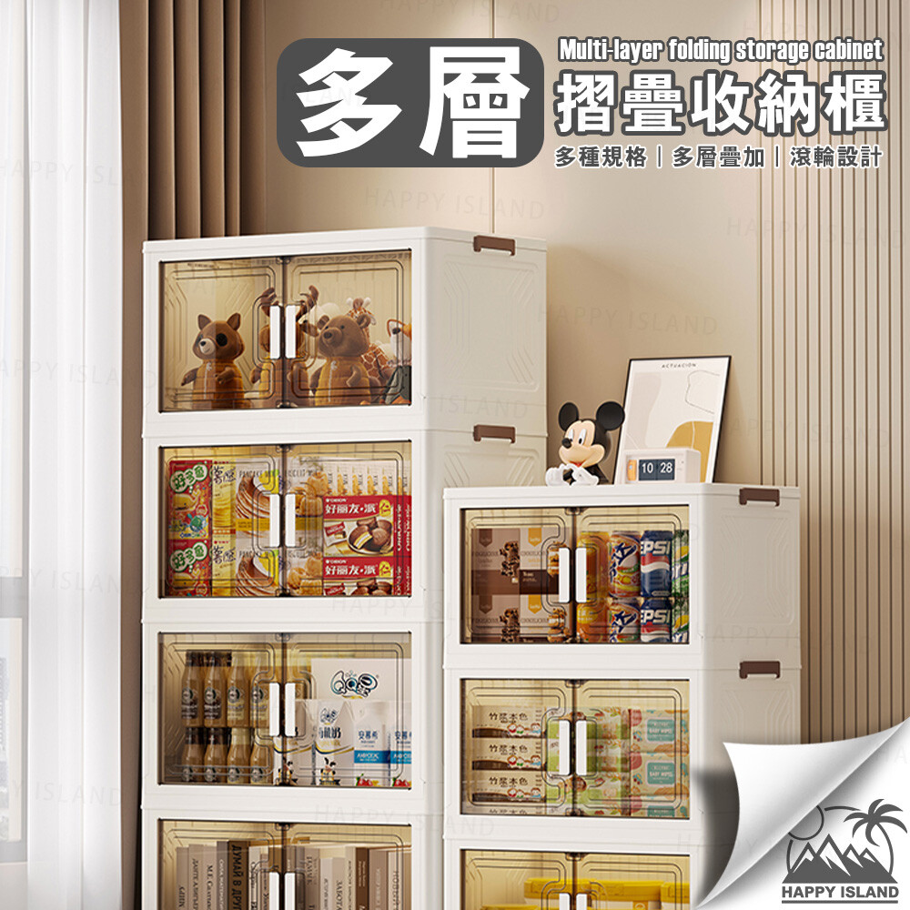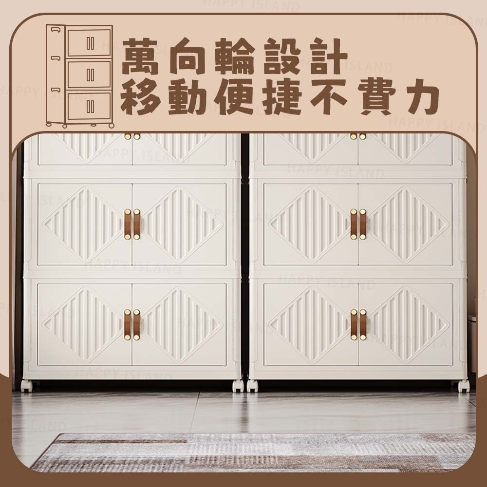 多層摺疊收納櫃〔中號三層〕大容量/免安裝收納櫃 開門式儲物櫃 多層 附滑輪