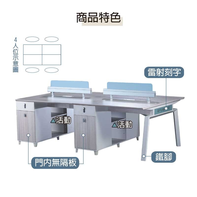 《奈斯家具Nice》950-23-HT 8824 四人位辦公桌