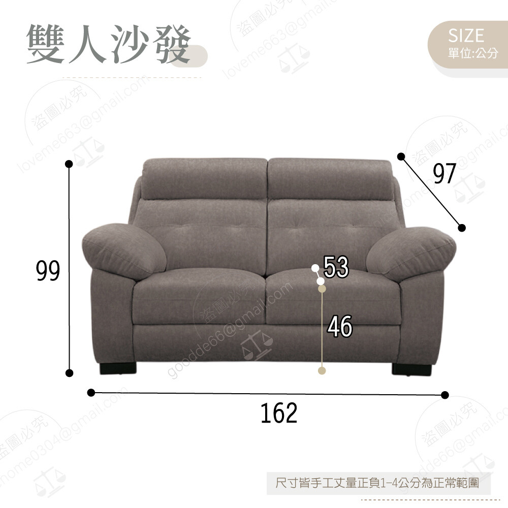 雙人沙發:寬162×深97×高99公分