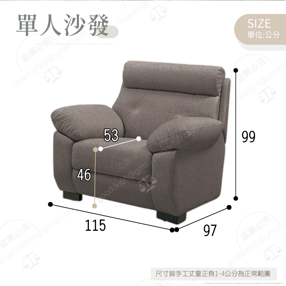 單人沙發:寬115×深97×高99公分