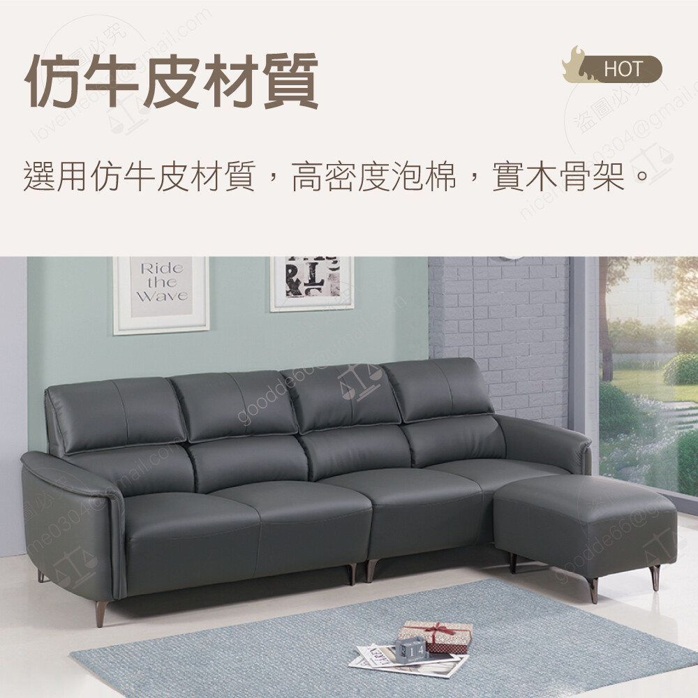 仿牛皮 高密度泡棉 實木骨架 腳高12公分