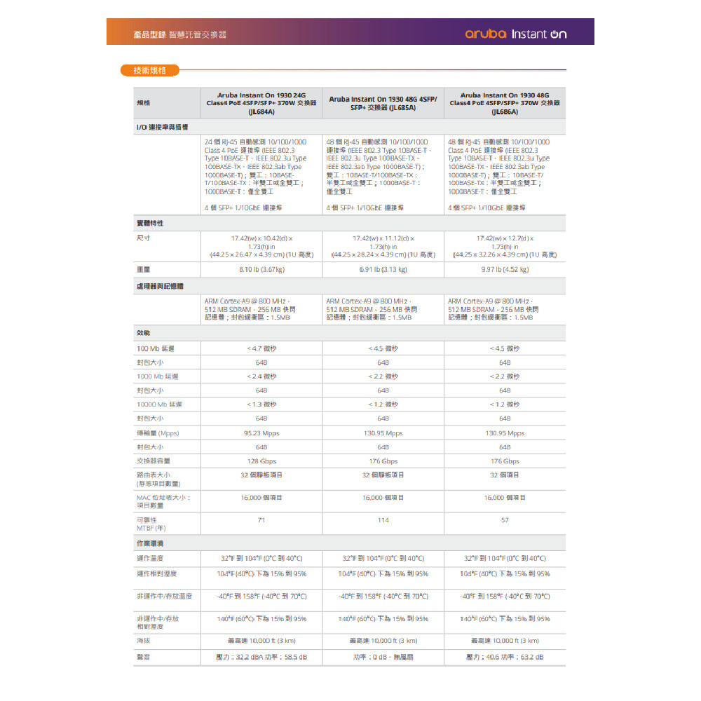 高效能與彈性部署:提供8、24 和48 埠的非PoE 與Class 4 PoE (PoE+) 機型,並配備1G SFP 或1G/10G SFP+ 光纖連接埠,以消除網路上的流量瓶頸。