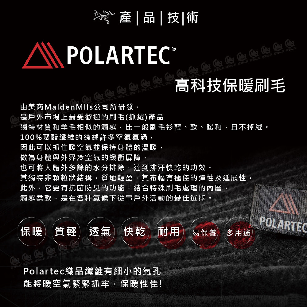 材質:Polartec Power Stretch Pro面料248gsm - 53%聚酯纖維、38%尼龍、9%彈性纖維