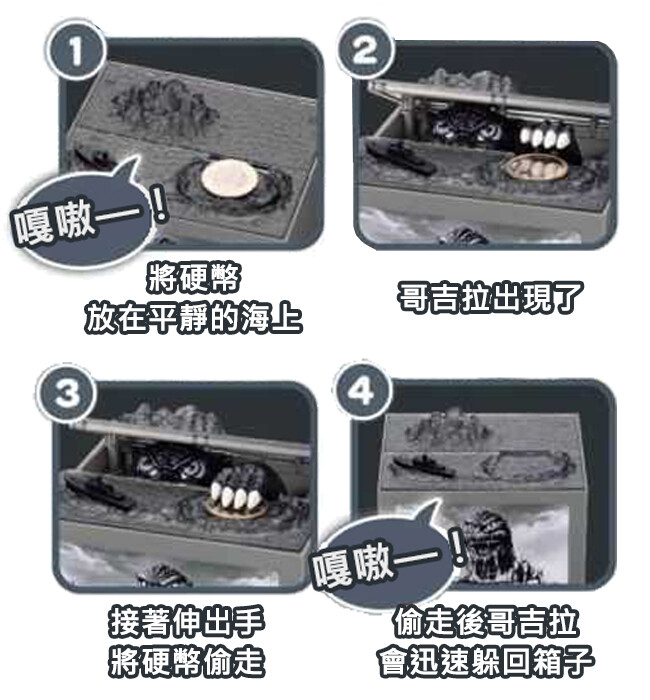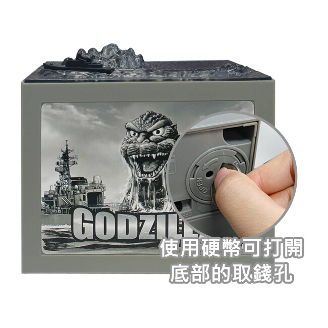 艾莉兒 哥吉拉 偷錢箱 存錢筒 黑白版 儲金箱 小費箱 恐龍 SHINE 日本正版【371249】
