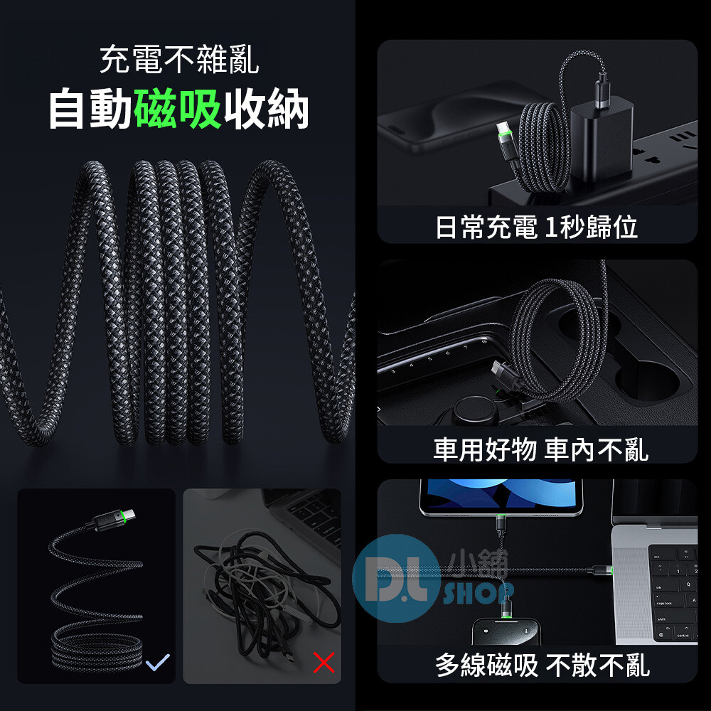 ✅全磁吸設計一捲就吸附,自動吸附成圈避免打結纏繞