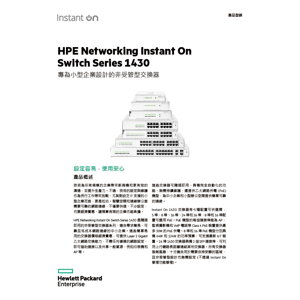 • 非管理型 Layer 2 Gigabit 乙太網路交換器系列可立即部署 5、8、16、24 和 26 埠機型
