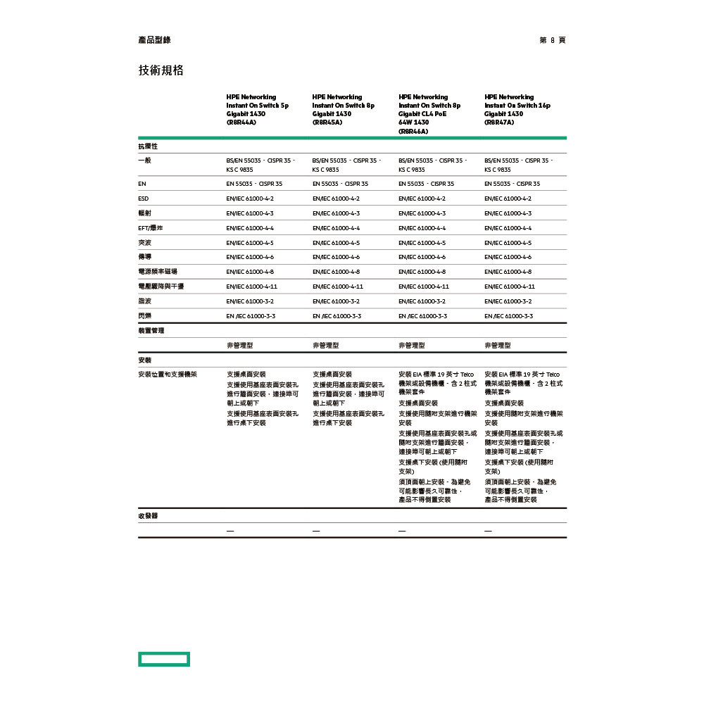 • 通過 Class B 驗證,適合住家辦公室網路 (5 埠和8 埠機型)
