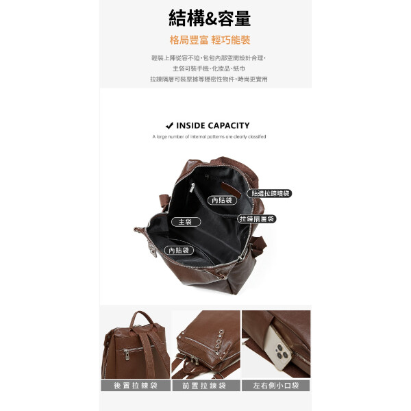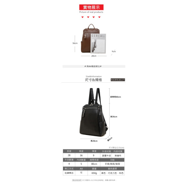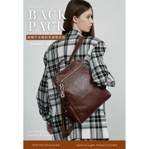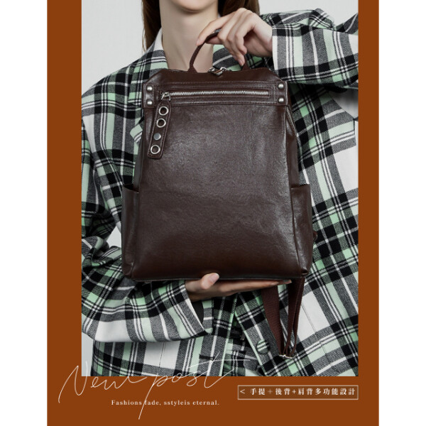 商品名稱:【喜番屋】真皮頭層牛皮女士雙肩包後背包女包【LB1177】