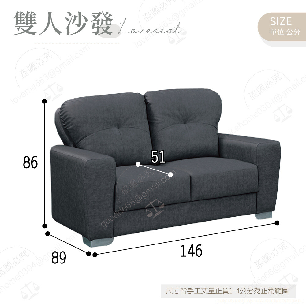 雙人沙發:寬146×深89×高86公分