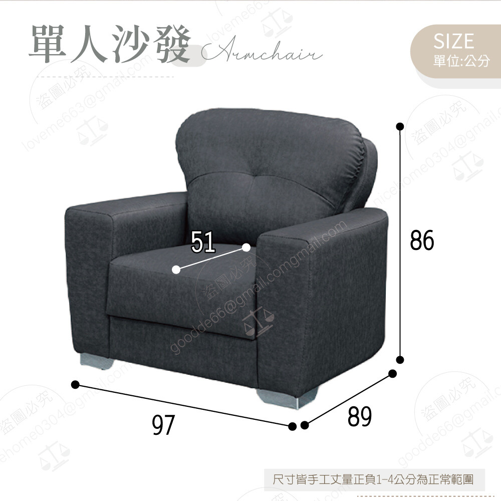 單人沙發:寬97×深89×高86公分